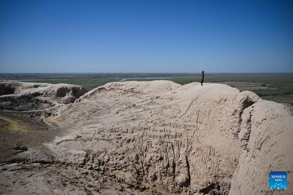 A man visits the Chilpik monument near Nukus, Uzbekistan, on April 11, 2026. Located more than 40 kilometers south of Nukus, the capital of the Republic of Karakalpakstan in Uzbekistan, the Chilpik monument was an ancient Zoroastrian archaeological site and later served as a signal tower. Nowadays, It becomes one of the region's key cultural symbols and attracts crowds of visitors from home and abroad. (Xinhua/Li Renzi)