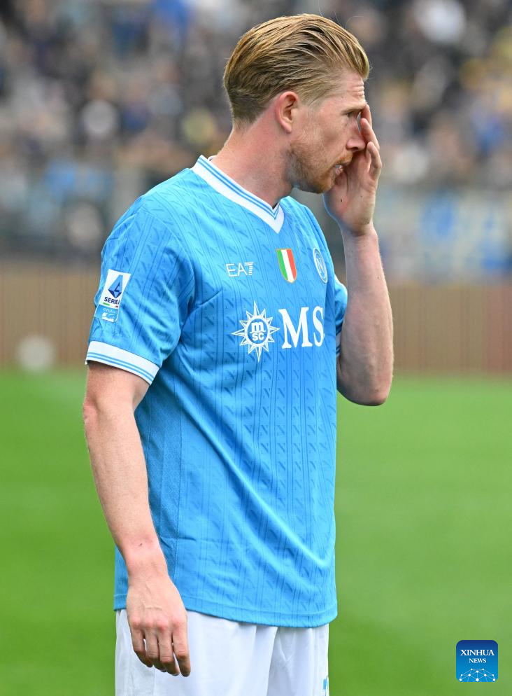 Napoli's Kevin De Bruyne reacts during a Serie A football match between Parma and Napoli in Parma, Italy, April 12, 2026. (Photo by Alberto Lingria/Xinhua)