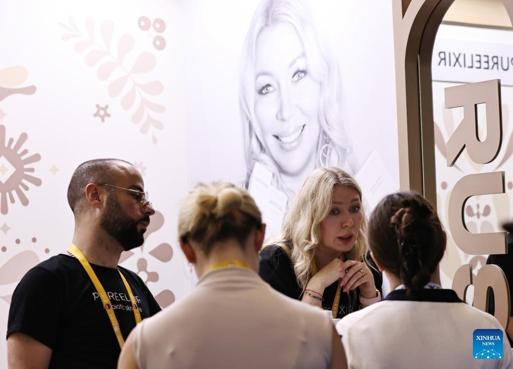 People visit the booth of a Russian cosmetics company during the sixth China International Consumer Products Expo (CICPE) in Haikou, south China's Hainan Province, April 13, 2026. Jointly hosted by China's Ministry of Commerce and the Hainan provincial government, the sixth CICPE marks the first edition of the event since the Hainan Free Trade Port fully launched island-wide special customs operations.