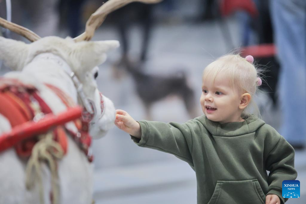 A child feeds a deer at the 2025 Pet Show in St. Petersburg, Russia, Dec. 14, 2025. The event brings together over 3,000 dogs and 800 cats. (Photo by Irina Motina/Xinhua)