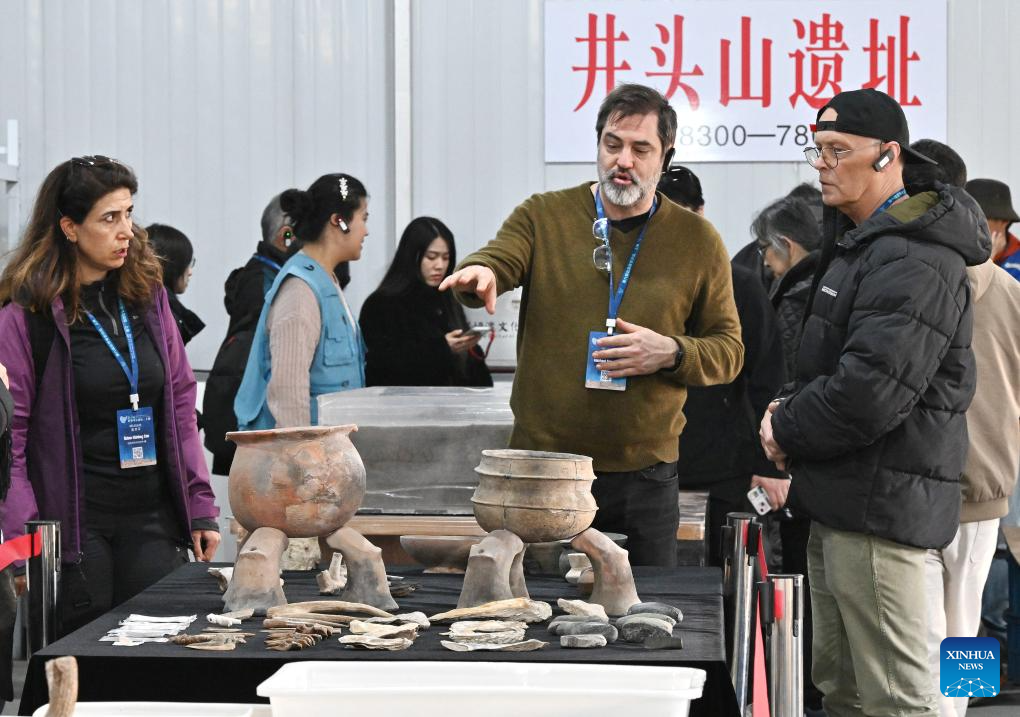 Researchers from Shaanxi Academy of Archaeology introduces the major archaeological discoveries at the Qingjianzhaigou Site in northwest China's Shaanxi Province during the sixth Shanghai Archaeology Forum (SAF2025) in Shanghai, east China, on Dec. 16, 2025. Jointly hosted by the Chinese Academy of Social Sciences, Shanghai Municipal People's Government and the National Cultural Heritage Administration of China, the SAF2025 themed on "Technology, Society and Archaeology" has attracted nearly 300 experts and scholars from over 40 countries and regions around the world to attend. (Xinhua/Li He)