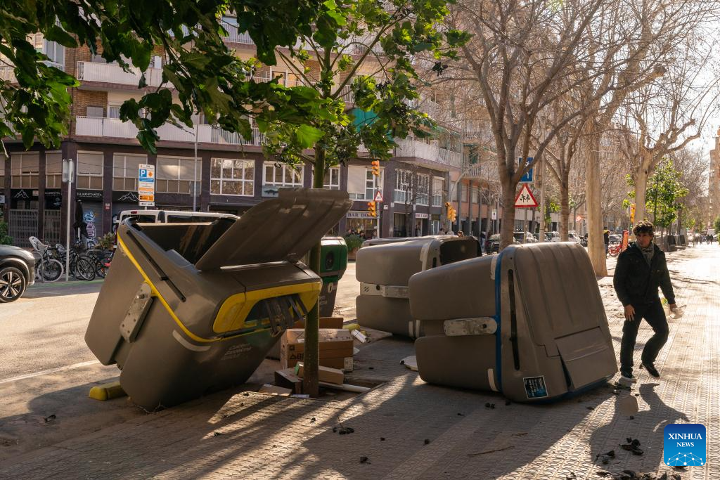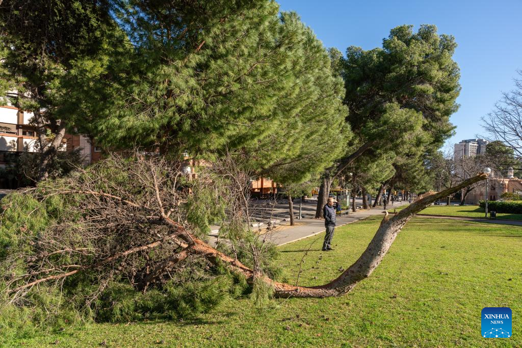 MADRID, Feb. 12 (Xinhua) -- Winds gusting at over 100 kilometers per hour have caused injuries, structural damage and transport disruptions in the northeastern Spanish region of Catalonia.