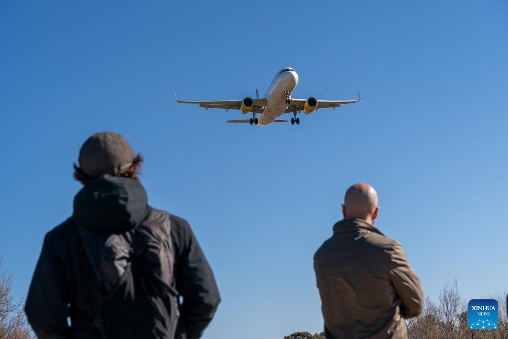 People watch a plane preparing to land at Barcelona's El Prat airport in Barcelona, Spain, on Feb. 12, 2026.