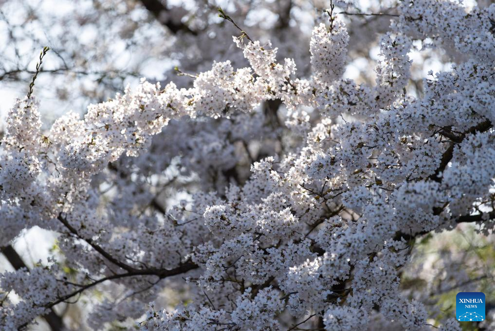 Cherry blossoms are pictured during the Cherry Blossom Festival at the Gardens of the World in Berlin, Germany, April 11, 2026. Around 25,000 visitors are expected to participate in the 18th Cherry Blossom Festival. (Xinhua/Zhang Haofu)