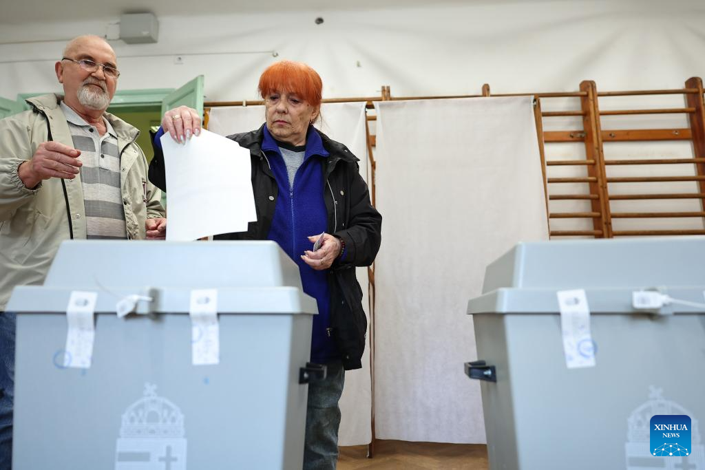 Voters cast their ballots at a polling station in Budapest, Hungary, April 12, 2026. Hungary's parliamentary elections kicked off at 6:00 a.m. local time (0400 GMT) on Sunday, with about 8.1 million eligible voters, according to the National Election Office. (Photo by David Balogh/Xinhua)