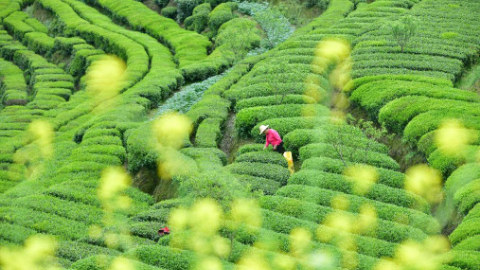 Tea farmers, enterprises busy harvesting and processing spring tea leaves across China