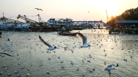 Migratory birds seen on Yalu River estuary in Dandong, China's Liaoning