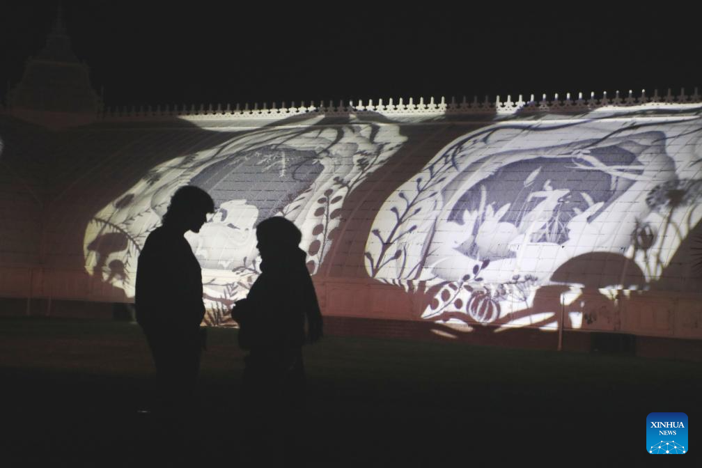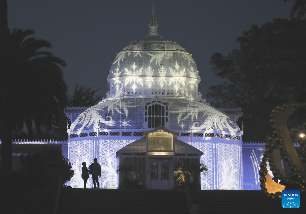 People watch a light show at the Conservatory of Flowers in Golden Gate Park of San Francisco, the United States, Dec. 15, 2025. (Photo by Liu Yilin/Xinhua)