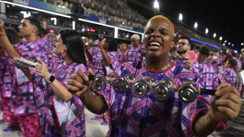 Revellers attend parade during Carnival 2026 in Rio de Janeiro